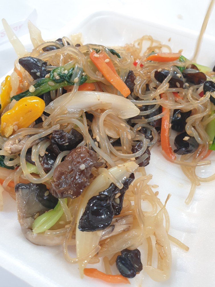 - 재료: 당면, 소고기, 시금치, 당근, 양파, 표고버섯, 간장, 설탕, 참기름
